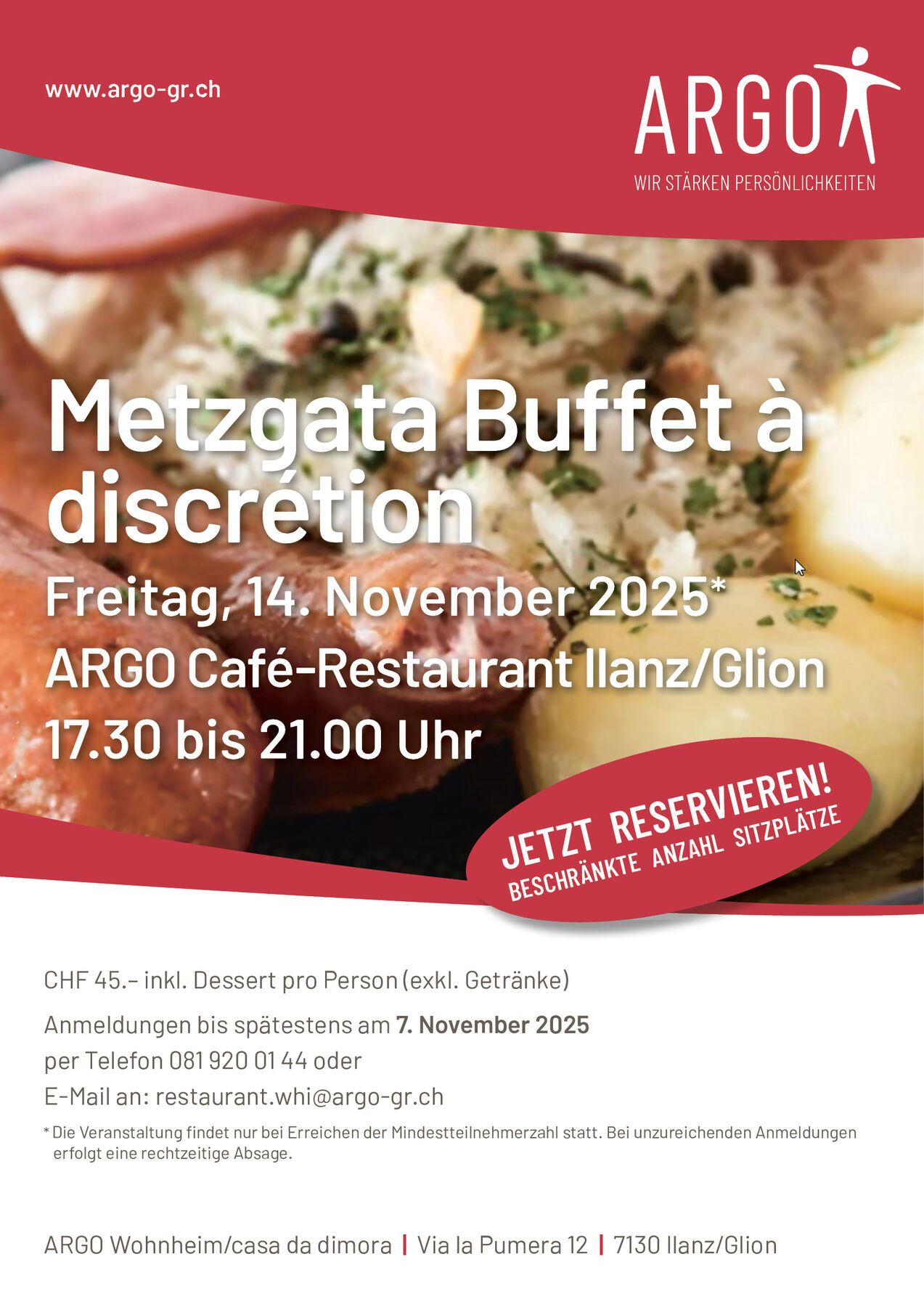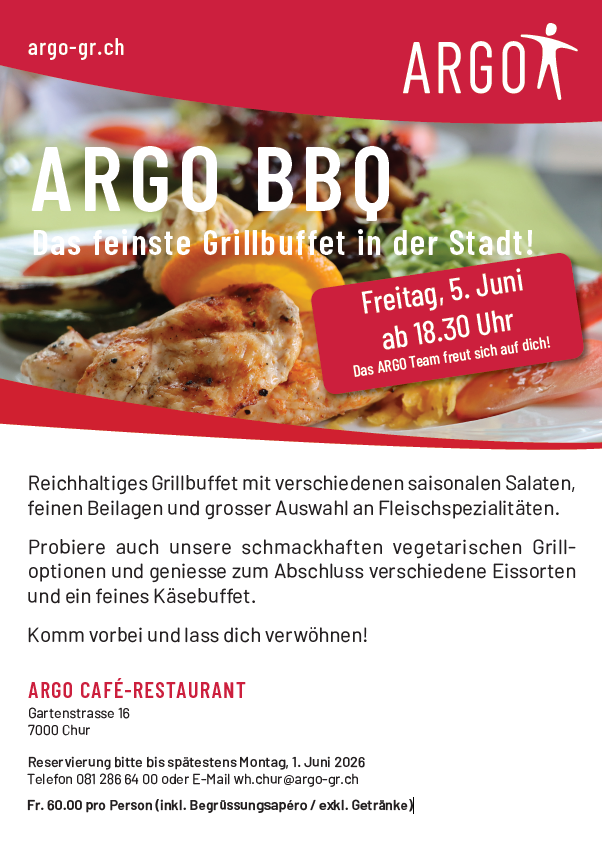 Die ARGO Stiftung ist seit 1970 eine führende Organisation für die soziale und berufliche Integration von Menschen mit Behinderungen in Graubünden. Mit acht Standorten in Chur, Davos, Ilanz und Surava/Tiefencastel bietet die Stiftung über 380 Menschen mit Behinderungen individuelle Wohn-, Arbeits- und Ausbildungsplätze. Rund 250 Fachpersonen begleiten sie dabei professionell.