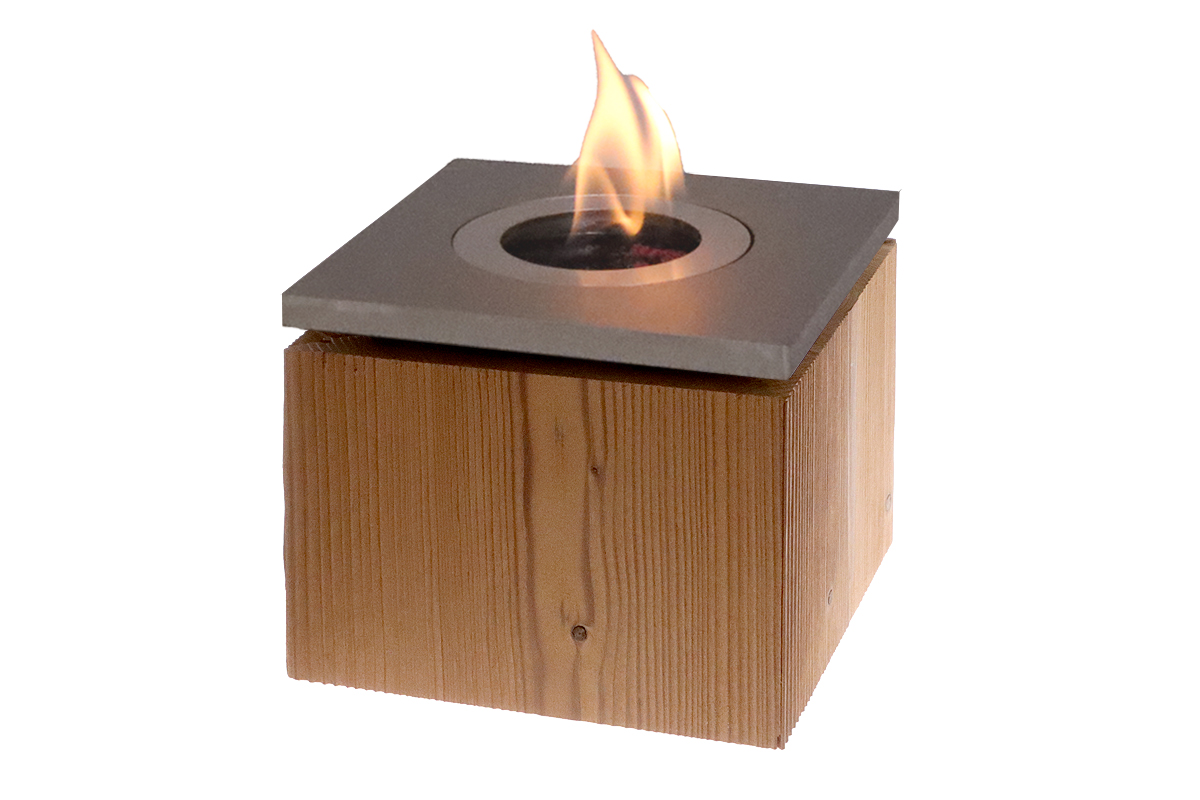 Einzigartiges Tischfeuer: Die Fusion von Holz und Edelstahl kombinierbar mit einem Raclette-Aufsatz